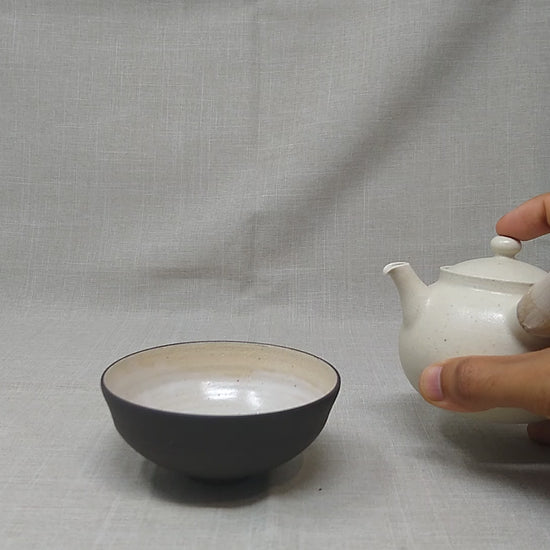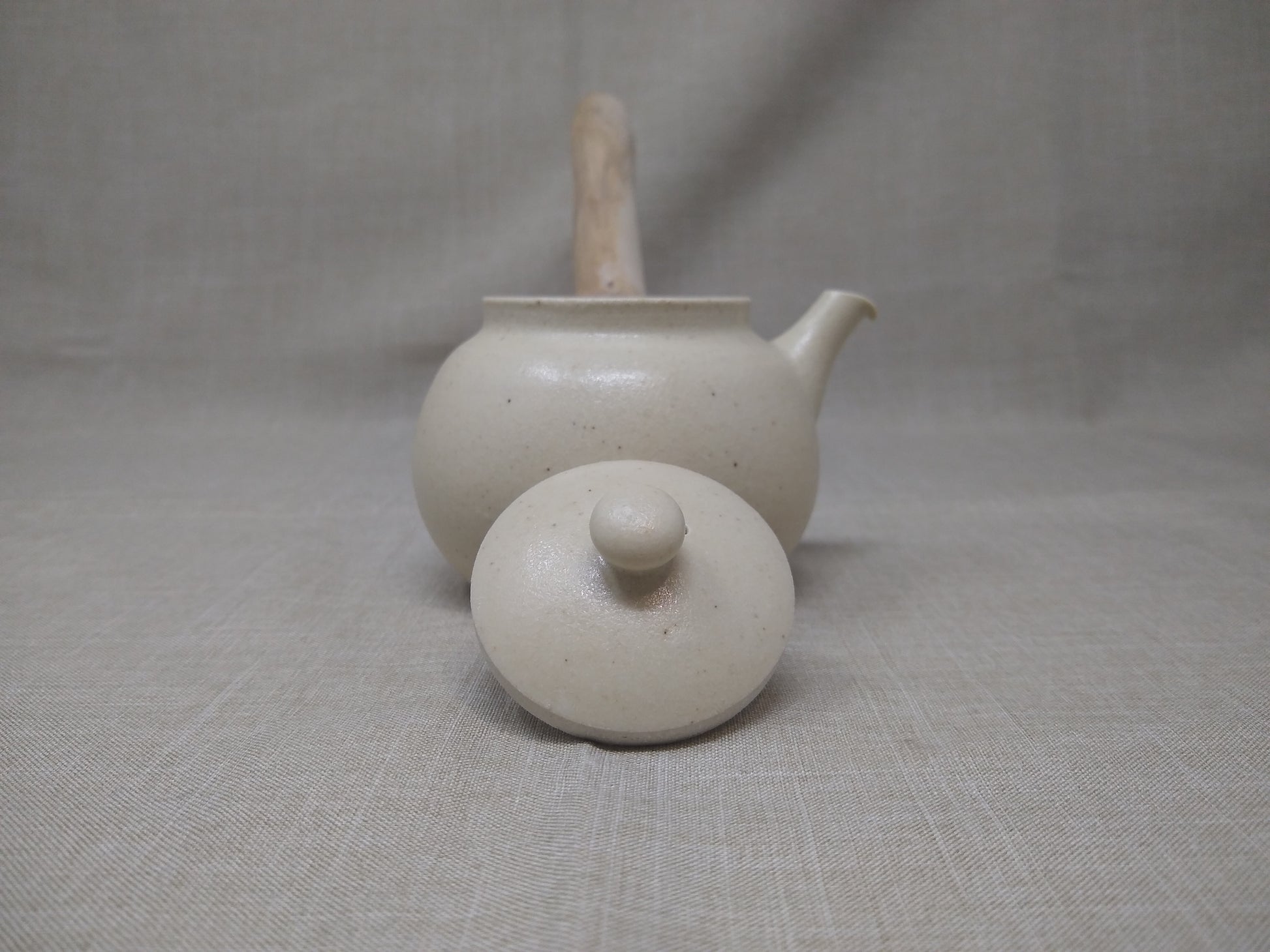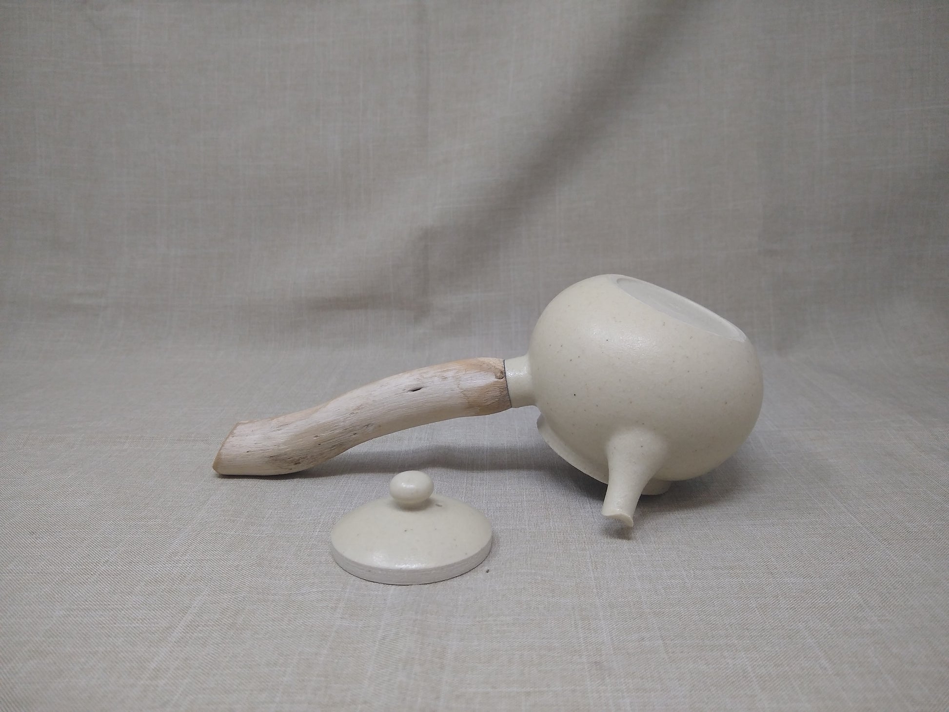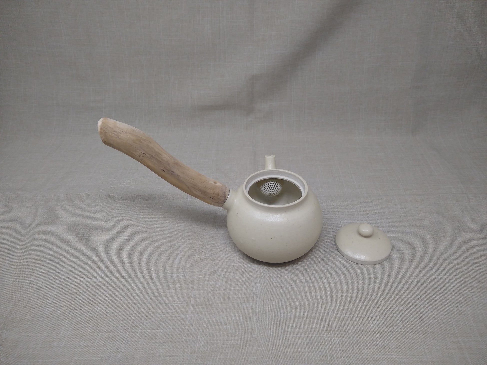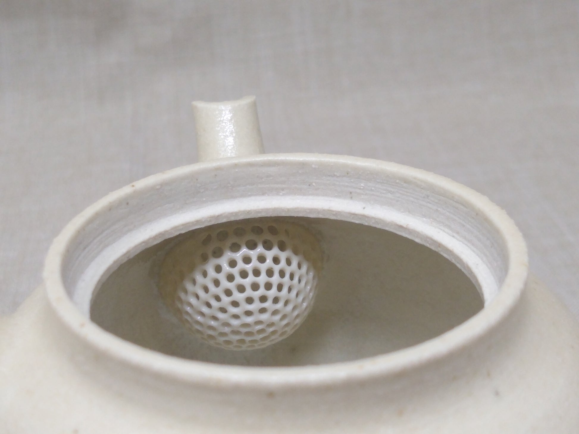 This teapot was made with a mineral rich clay. The exterior is sealed with a matte white glaze. The interior of the teapot has my signature soft white glaze which helps make the color of the tea being steeped more visible. The soft white glaze also allows some of the natural clay features to come forth. The teapot lid is measured and trimmed with precision to ensure that it fits nice and tight. The built in strainer has approximately 259 small holes that are 1 millimeters in diameter. This strainer functions excellent with all teas.