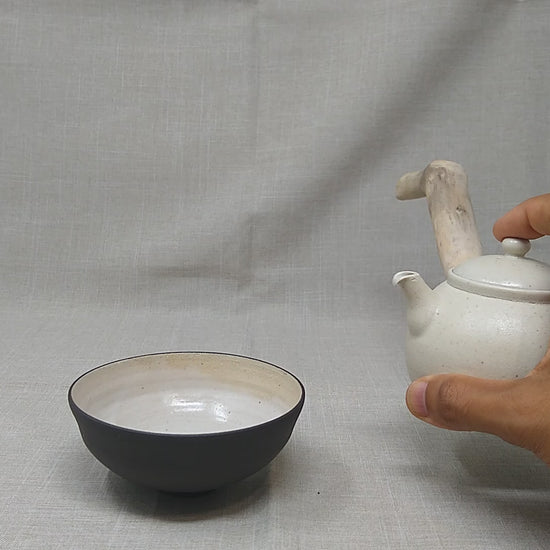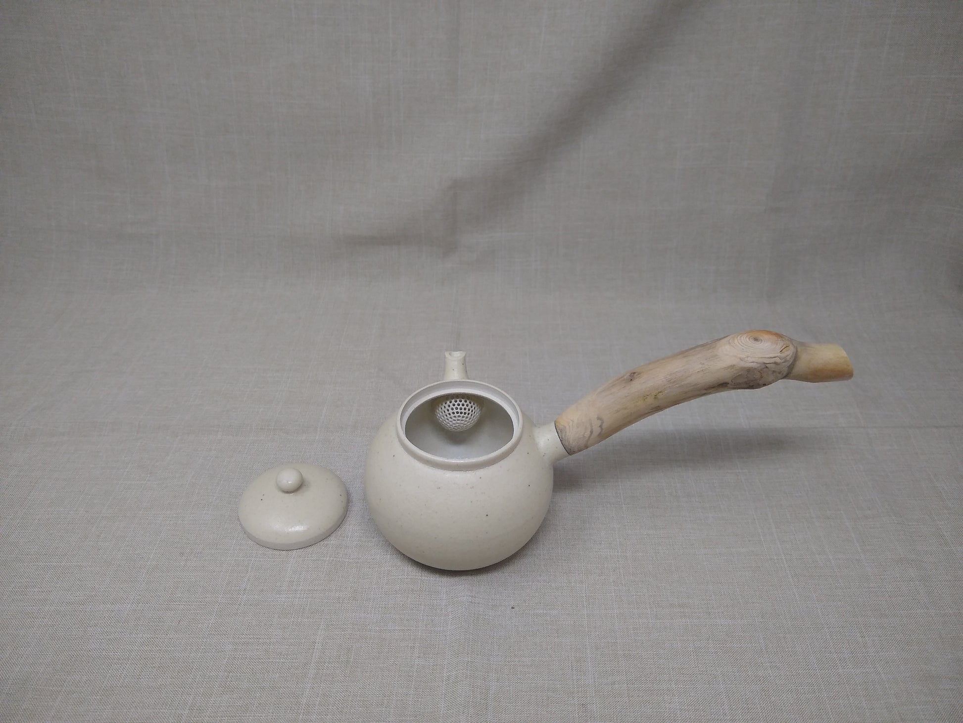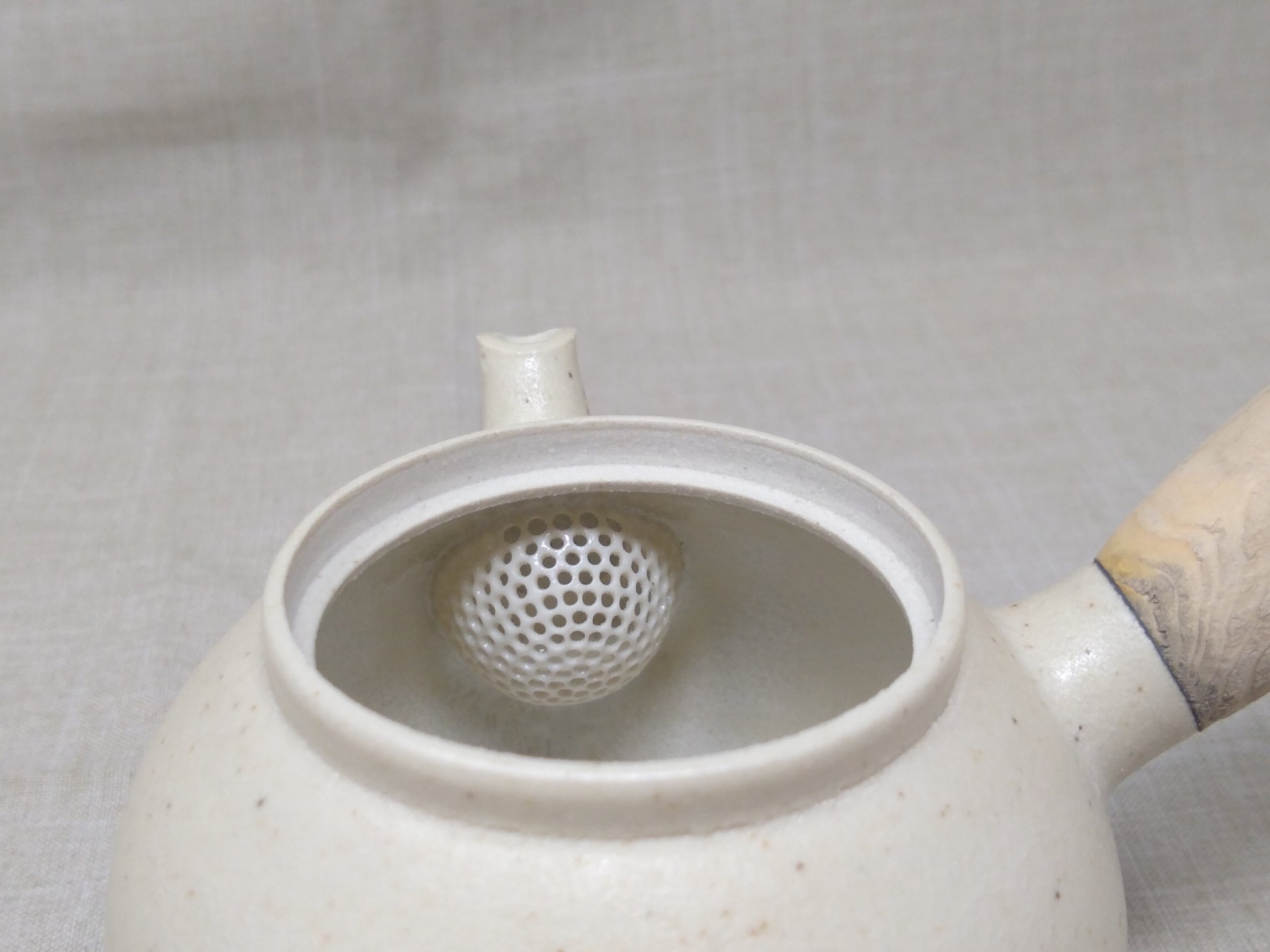 This teapot was made with a mineral rich clay. The exterior is sealed with a matte white glaze. The interior of the teapot has my signature soft white glaze which helps make the color of the tea being steeped more visible. The soft white glaze also allows some of the natural clay features to come forth. The teapot lid is measured and trimmed with precision to ensure that it fits nice and tight. The built in strainer has approximately 259 small holes that are 1 millimeters in diameter. This strainer functions excellent with all teas.