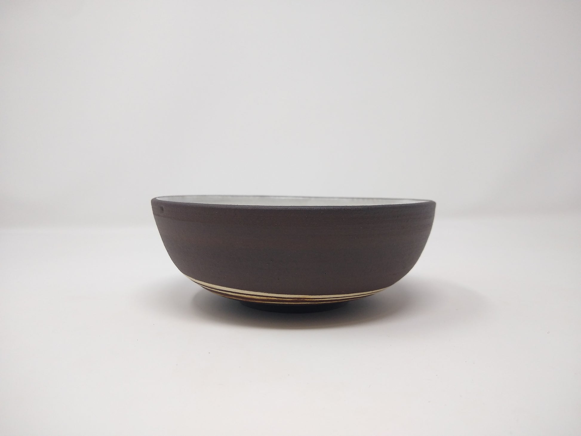 This bowl was made with a mineral rich clay. The exterior is unglazed. The interior has my signature soft white glaze.