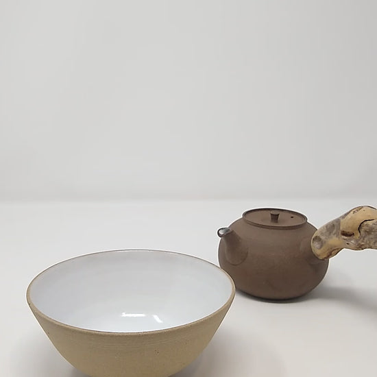 This teapot was made with a mineral rich clay. The exterior is unglazed, showcasing this beautiful tan clay. The interior of the teapot has my signature soft white glaze which helps make the color of the tea being steeped more visible. The soft white glaze also allows some of the natural clay features to come forth. The teapot lid is measured and trimmed with precision to ensure that it fits nice and tight. The built in strainer has approximately 259 small holes that are 1 millimeters in diameter. This strainer functions excellent with all teas.