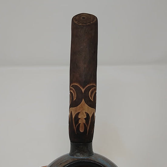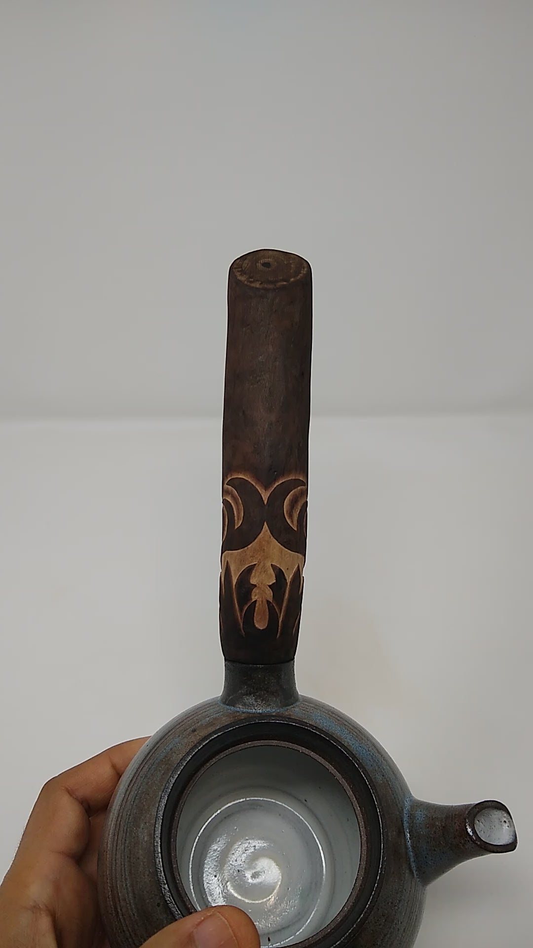 This teapot was made with a mineral rich clay. The exterior is finished with a shino glaze that captured the essence of a cloudy night. The interior of the teapot has my signature soft white glaze which helps make the color of the tea being steeped more visible. The soft white glaze also allows some of the natural clay features to come forth. The teapot lid is measured and trimmed with precision to ensure that it fits nice and tight. The built in strainer has approximately 259 small holes that are 1 millimeters in diameter. This strainer functions excellent with all teas.